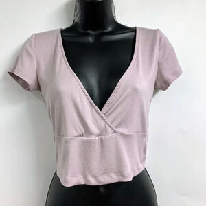 Aritzia Sunday Best Women's Ribbed V Neck Short Sleeve Shirt Size S