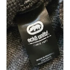 Ecko Unltd Hoodie Mens Med Gray Waffle Knit Pullover Logo Y2K Skate Hip Hop