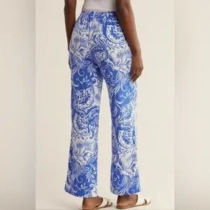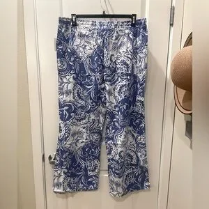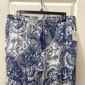NWT…Super cute! Elevate your style with these chic blue and white paisley pants. Perfect for any occasion, these pants offer both comfort and elegance. Features an elastic waist with taseel drawstring and side pockets creates a relaxed fit for any occasion.