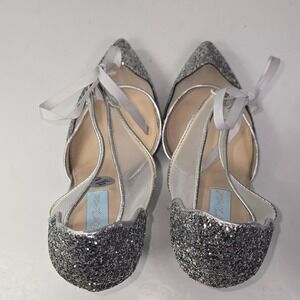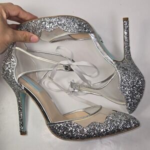 Betsey Johnson Sparkle Glitter Mesh Stiletto Heels Silver Women Size 9.5