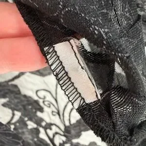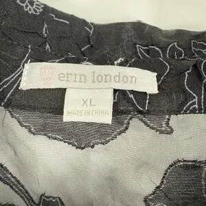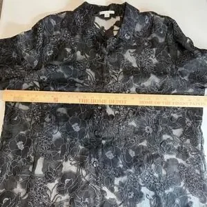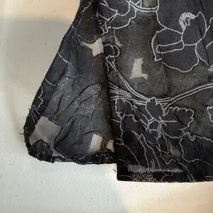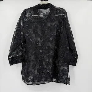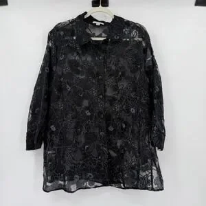 Erin London Black Floral Sheer Button Up Tunic Top Size XL
