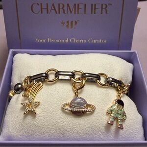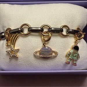 Bomb Party Charmelier ‘Cosmic Drip’ Gold and Hematite Charm Bracelet