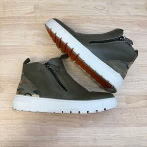 Vionic Brinkley Olive Green Leather Gold Camo High Top Sneakers Womens 7.5