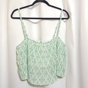 Hawaii's Finest Hawaiian Quilt Print Spaghetti Strap Crop Top XL Green White