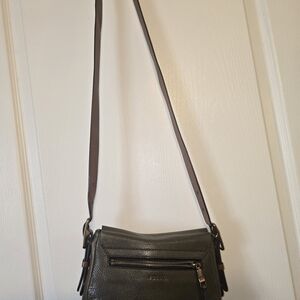 Olive green fossil crossbody bag. Great for everyday wear! The inner lining is kinda flaking but the outside is actual leather and looks very nice!