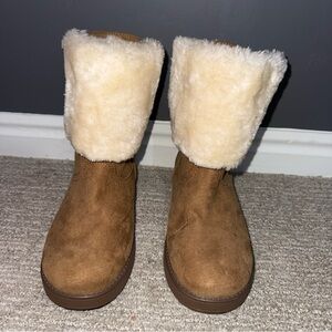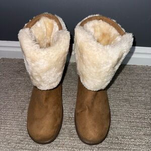 GGASHLEAR Women’s Faux Fur Winter Ankle Boots Brown Lace Up Cosy Warm– Size 6.5M