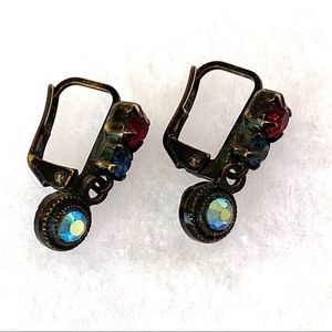 Elegant Sorrelli earrings with red and blue crystals. Perfect for any occasion.