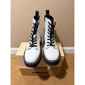 Sincerely Jules White Combat Boots Chunky Lug Sole Platform Vegan Side Zip sz 7