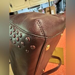 Coach rich Burgundy Leather studded shoulder bag with crossbody strap EUC