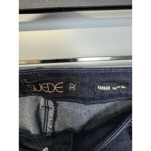 Denim Suede Brand Jeans Womens 32 Navy Blue Farrah High Rise Flare Leg