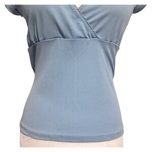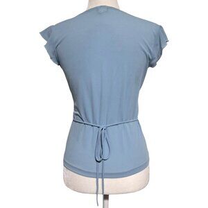 This versatile wrap-style top features a flattering V-neckline, cap sleeves, and a waist tie for a polished and comfortable fit.