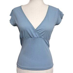 Vintage Y2K Janette USA Blue Babydoll Surplice Top Crochet Trim Empire Waist Tie