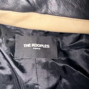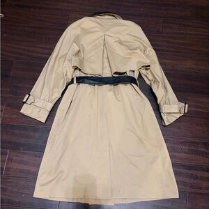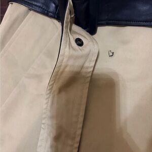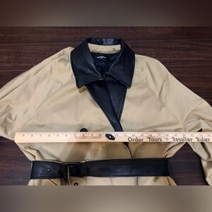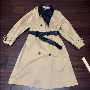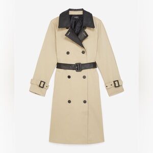 The Kooples Coat Womens Large Beige Black Faux Leather Collar Belted Trench