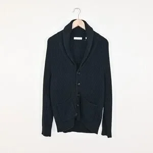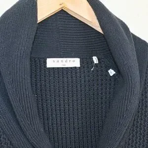Sandro Paris Men's Shawl Collar Cardigan Sweater Heavy cotton knit Navy Small