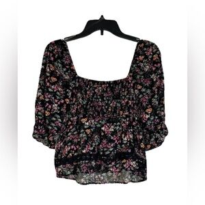 LOVE, FIRE Smocked Lace Trim Top