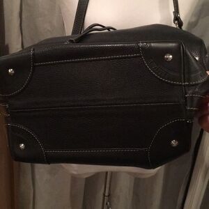 NWOT Kesslord Black Leather silver stud bucket bag. 2 interior pockets. 1 slip 1 zipper close.