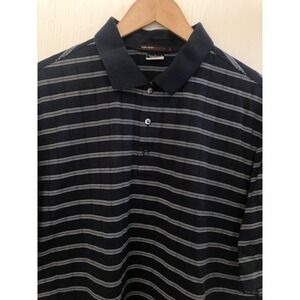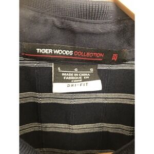 Nike Tiger Woods Polo Shirt Mens Large Navy Striped Short Sleeve Dri Fit Golf