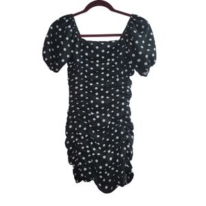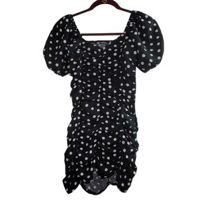 Zara Black & White Polka Dot Ruched Mini Dress with Puff Sleeves