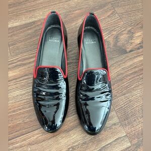 Stuart Weitzman Patent Leather Loafers With Red Trim