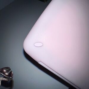 Stylish and portable makeup mirror. Features a light pink-cream case & frame.