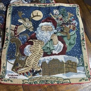 Vtg Set Of 2 Betty Smith Whiteaker Santa Christmas Tapestry Pillow Covers 15"