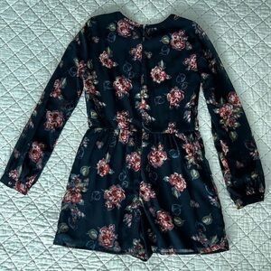 Abercrombie & Fitch floral romper. Sheer long sleeves. Zipper back closure. Key hole front. Has pockets.