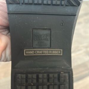 Cougar rain shoes • waterproof slip-on flats • women’s size 8 rubber shoe • black garden shoe • weatherproof walking shoe • floral embossed rain shoe • wet weather commuter shoe • yard work footwear • practical outdoor slip-ons