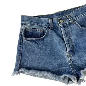 John Galt California, vintage denim shorts, button fly, festival shorts, high rise cutoffs, raw hem, casual summer shorts, 90s aesthetic, Y2K style, minimalist, streetwear, trendy shorts, non-stretch denim, Coachella look, grunge fashion, classic fit, timeless style, women’s shorts, frayed jean shorts, John Galt bottoms, size medium shorts