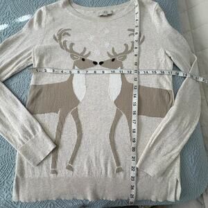 LOFT Deer Sweater Womens S Beige Winter Reindeer Holiday Pullover Knit Softgirl