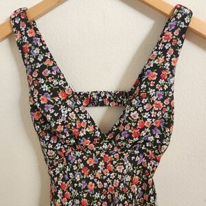 Princess Polly Dress Mini Floral Cutout Back Sleeveless Black Multicolor Size 4