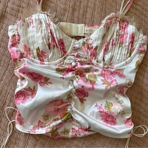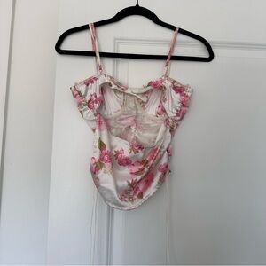 Victoria’s Secret, For Love & Lemons, floral top, corset top, bustier, lace trim, romantic top, summer outfit, date night, festival top, cottagecore, girly style, crop top, corset
