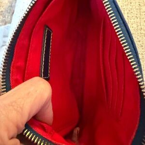Dooney and Bourke versatile crossbody bag. Features a rich dark blue color. Leather straps are adjustable. Super clean red inside with zip pouch and card slots. No callouts! EUC