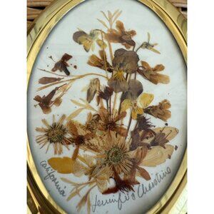 Bring a touch of the 1970s to your space with this unique easel featuring real dried California flowers in a stunning gold frame, perfect for any tabletop display. This measures 5.5x4" It is signed California and the artist who made it. It is in good displayable condition.