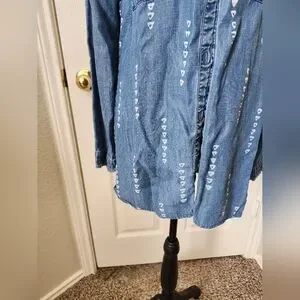 Stylish denim button-down with a relaxed fit. Features a classic collar and button details. Perfect for casual outings.