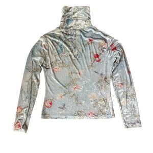 Vintage Floral Velvet Turtleneck Top Cottagecore Fairycore Long Sleeve