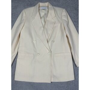 Vtg Norton McNaughton Blazer Womens 12 Ivory Wool Double Breasted Old Money Read