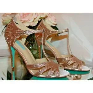 display light sole markings as pictured. These Betsey Johnson Sandals have a Peep-Toe and 4.25 inch heel.