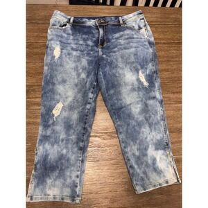 Maurices Womens Jeans Size 16 Medium Wash Distressed Cropped Capri