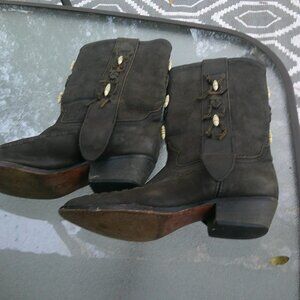 Vtg ladies Dingo Leather point toe mid calf western boots bone bead deco 8 m