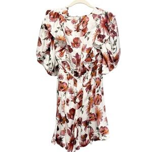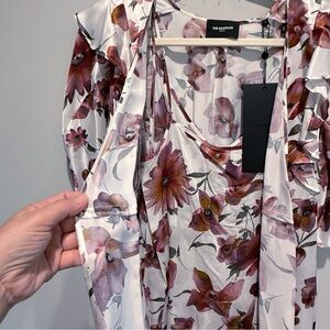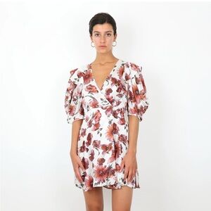 The Kooples Dress Silk Floral Print Wrap Mini Pink White Puff Sleeves Boho NWT