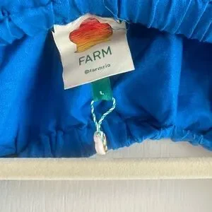Brand new with tags – FARM Rio Blue Midi Knot Dress in size Large. This stunning dress features an off-the-shoulder neckline, elbow-length puff sleeves, and a front knot detail that creates a flattering cutout at the waist. Crafted from a breathable linen-viscose blend, it’s perfect for warm-weather occasions.