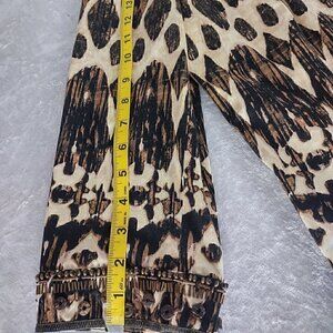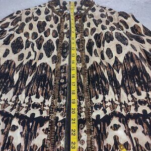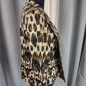 Chico's Brown Beaded Embellished Artisan Animal Print Open Jacket Size 1 Size M