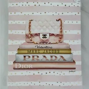 Stylish wall art set featuring Chanel and Prada themes. Perfect for fashion lovers. Price for all 3 but can be sold separately.
