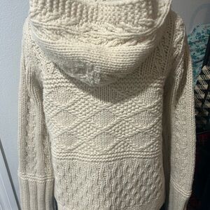 Vintage Lambswool Cream Knit Hooded Chunky Cardigan Sweater
