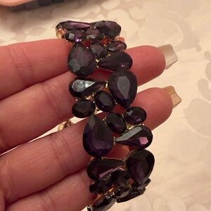 Chic bracelet with rich purple stones. Gold-tone setting adds luxury. Ideal for any occasion.