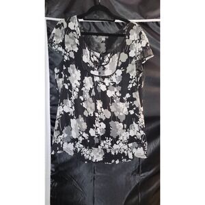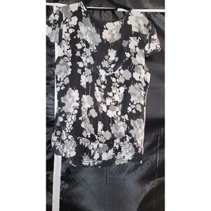 Apt 9 Women's Black Floral Sheer Short Sleeve Top Size XL
