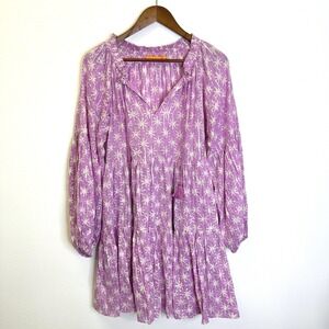 Oliphant Tiered Balloon Sleeve Star Print Dress Purple Size S