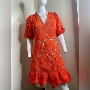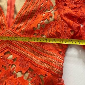 Stand out in this vibrant orange lace dress, perfect for any occasion. The intricate lace design adds a touch of elegance and sophistication.