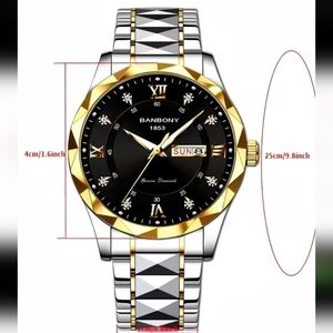 Mens Black/Gold Luxury Stainless Steel Strap Multifunctional Watch. Read Below.