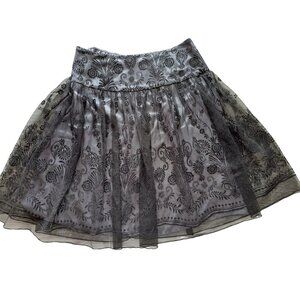 Black Goth Mesh Layered Midi Skirt Floral Zip Womens 18 Fairy Cottage Whimsygoth